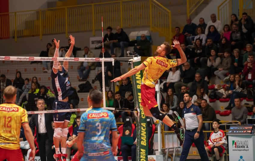 In una situazione di grande emergenza il tecnico giallorosso Cezar Douglas ha trovato linfa vitale dalla panchina, con l’innesto propizio del martello trentino Michele Fedrizzi, autore di 3 punti con il 100% in attacco e un muro vincente dando ossigeno ad una ricezione che ha sofferto oltremisura nel corso dei quattro parziali. Recuperato lo svantaggio (18 pari), è salito in cattedra l’opposto Paul Buchegger, che ha piegato la strenua resistenza dei ravennati realizzando 4 degli ultimi sei punti del match. Il posto-2 austriaco, a cui è andata la palma di Mvp della contesa, ha realizzato 17 punti con il 52% di positività sui 29 palloni attaccati. Il top scorer del match, invece, è stato il talentuoso opposto ravennate Alessandro Bovolenta, autore di 25 punti, con un ottimo 51% di positività offensiva. Quanto alle formazioni, il coach brasiliano della Tonno Callipo Cesar Douglas Silva non ha rischiato inizialmente il ritorno del centrale salentino Alessandro Tondo, confermando al centro della rete il giovane Cosimo Balestra accanto vice capitano Davide Candellaro, in posto –4 il serbo Nicola Mijailovic al fianco di Jernej Terpin, a comandare le operazioni di seconda linea Domenico Cavaccini, mentre la solida diagonale palleggiatore–opposto è stata formata dal capitano italo–argentino Santiago Orduna e dal poderoso austriaco Paul Buchegger. L’esperto coach tecnico ravennate Marco Bonitta, si è invece affidato al giovane Filippo Mancini in regia, il figlio d’arte Alessandro Bovolenta opposto, Roberto Pinali e Mattia Orioli in posto –4, Victorio Ceban e Francesco Comparoni al centro della rete e l’esperto capitano Riccardo Goi libero. Archiviata gara uno, l’attenzione va rivolta al match di ritorno in programma al “PalaCosta”, dove la squadra vibonese cercherà di chiudere i conti, evitando di arrivare all’eventuale sfida di spareggio al “PalaMaiata”.